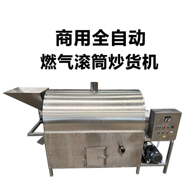 點火升溫應啟動電機,使?jié)L筒轉(zhuǎn)動,避免滾筒局部受熱,滾筒預熱到50℃左右即可進料炒籽,待物料炒到合適時(炒料時間視火力大小,一般為20-25分鐘,看籽炒熟)。即可判斷是否出料,如能出料按倒正開關放料,使物料陸續(xù)放出,每鍋炒料數(shù)量為滾筒容積三分之一以下為宜;下班講爐火熄滅,然后停機?;虺赐曜押髮t火熄滅,并旋轉(zhuǎn)3-5分鐘停機。